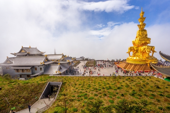 (早:酒店,午:特色菌汤锅,晚:青城养生宴) 早餐后,参观【传统藏寨】,了解当地传统银饰制作技艺或体验藏茶。参观了解中国玉文化后,漫步川北“边陲重镇”【松潘古城】。在这里,可见文成公主和松赞干布的塑像,也是历史悠久的藏、羌、回、汉族人民“茶马互市”的重要驿站。前往都江堰,沿途欣赏阿坝州的壮美风光。途经1933年形成的地震遗址【叠溪海子】,还有机会看到藏族同胞心中圣洁的白牦牛。 住宿:都江堰希尔顿惠庭酒店或同级酒店第5天: 都江堰 / 峨眉山